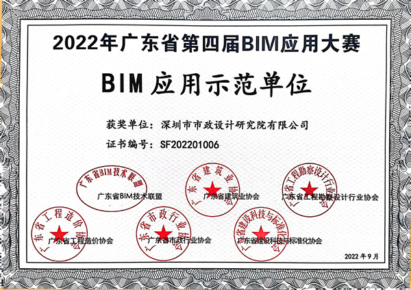 BIM應(yīng)用示范單位獲獎證書