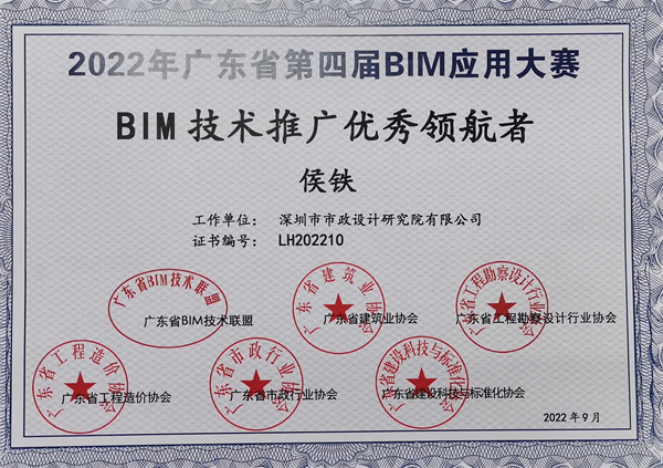 2023年3月15日,由廣東省BIM技術(shù)聯(lián)盟、廣東省建筑業(yè)協(xié)會、廣東省工程勘察設(shè)計行業(yè)協(xié)會等行業(yè)協(xié)會聯(lián)合舉辦的“廣東省第四屆BIM應(yīng)用大賽”頒獎典禮暨第七屆廣東省BIM發(fā)展論壇在廣州順利舉辦。經(jīng)大賽專家委員會評審,深圳市政院榮獲“BIM應(yīng)用示范單位”榮譽稱號。尤值一提的是,廣東省共評選10家“BIM應(yīng)用示范單位”,深圳市政院為深圳市唯一獲獎單位。此外,深圳市政院參選項目獲設(shè)計組一等獎,深圳市政院數(shù)字業(yè)務(wù)總監(jiān)侯鐵榮獲“BIM技術(shù)推廣優(yōu)秀領(lǐng)航者”稱號,賴華輝博士榮獲“BIM技術(shù)應(yīng)用杰出人才”稱號。